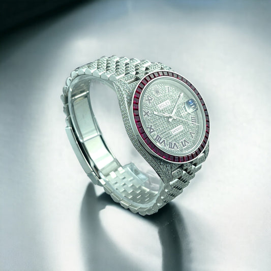 ROLEX DATEJUST 41 FULL ICED OUT – RUBY BEZEL - RED ROMAN DIAL