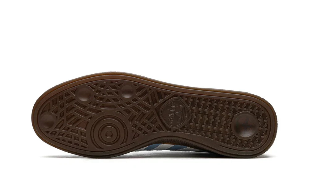The adidas Handball Spezial “Light Blue” is an eye-grabbing colorway of the sneaker inspired by 1980s-era soccer shoes. The Handball Spezial in “Light Blue” is constructed with a light blue suede upper with white Three Stripes branding on the sides. Gold “Spezial” and adidas logos are seen on the lateral side of the mid-panel. A white leather overlay is seen on the heel. Classic adidas Handball Spezial branding is printed in gold lettering on the tongue. A gum rubber sole completes the look.